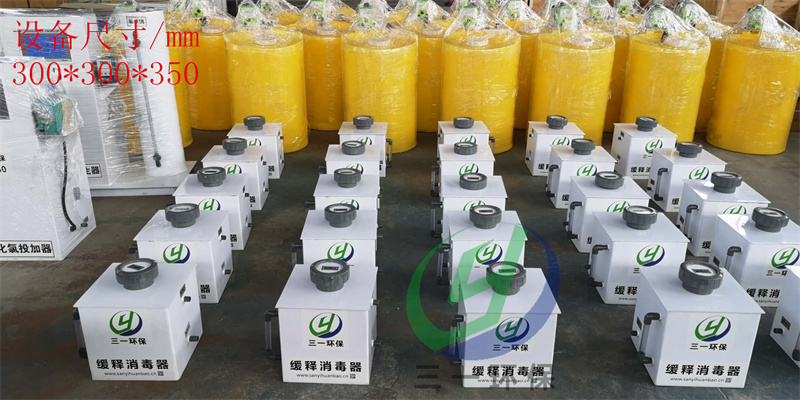 设备原理:用溶解法,自动缓释,压力加氯工艺设计,以含80%以上的CL固体药剂为主要原料,经水与药剂合理混合缓释所产生的消毒液,投入到所需水池与水充分接触杀菌消毒。
