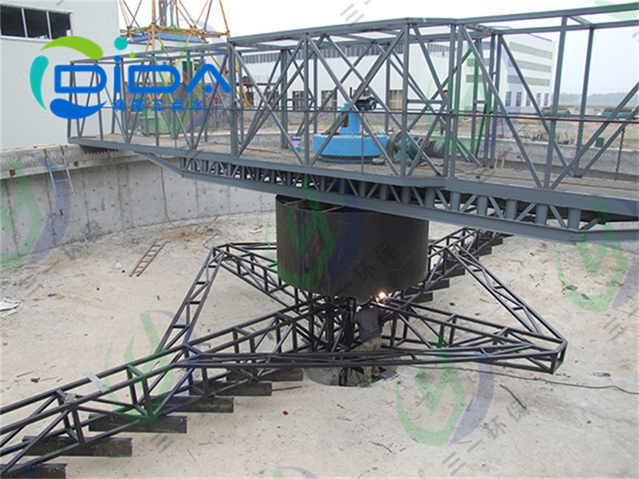 工作桥由安装在周边的驱动机构带动,绕安装的池中心支墩上的中心支座旋转,沉淀在池底的污泥由集泥板集至各吸泥口,在液位差的作用下,污泥经吸泥口、集泥槽、虹吸管、中心泥罐、排泥管排至池外。每个吸泥管上端设有排泥量调节阀,以调节各吸泥管的流量和浓度。液面上的浮渣在浮渣刮板和周边挡渣堰形成的渐缩区域集中,由浮渣刮耙到集渣斗,排出池外。
